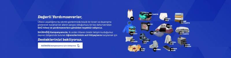 SAÜBAĞIŞ Kampanyamızla, ilk andan itibaren birebir iletişim kurduğumuz deprem bölgesinde bulunan öğrencilerimizin acil ihtiyaçlarını karşılamak için desteklerinizi bekliyoruz.