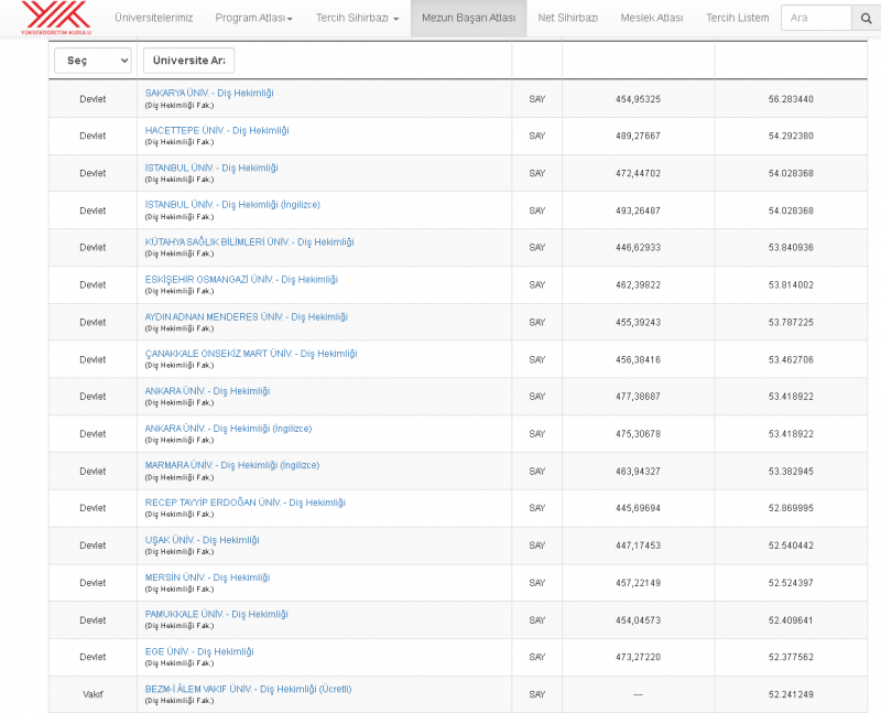 2025 yılı Diş Hekimliği Uzmanlık Sınavı (DUS) mezun başarı atlası verilerine göre Sakarya Üniversitesi Diş Hekimliği Fakültesi mezunları, ortalama net bazında Türkiye birincisi olarak büyük bir başarıya imza atmıştır.